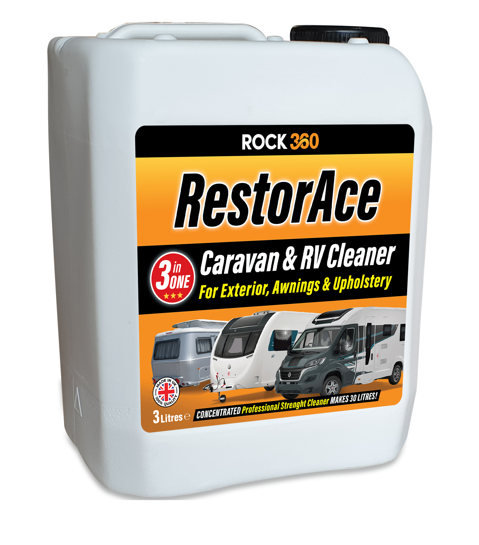 Multi-purpose cleaning solution designed for deep clean, algae removing and economical year-round maintenance of Caravans, RVs, Motorhomes, Awnings, Tents, Upholstery & Decking (Static Caravans).